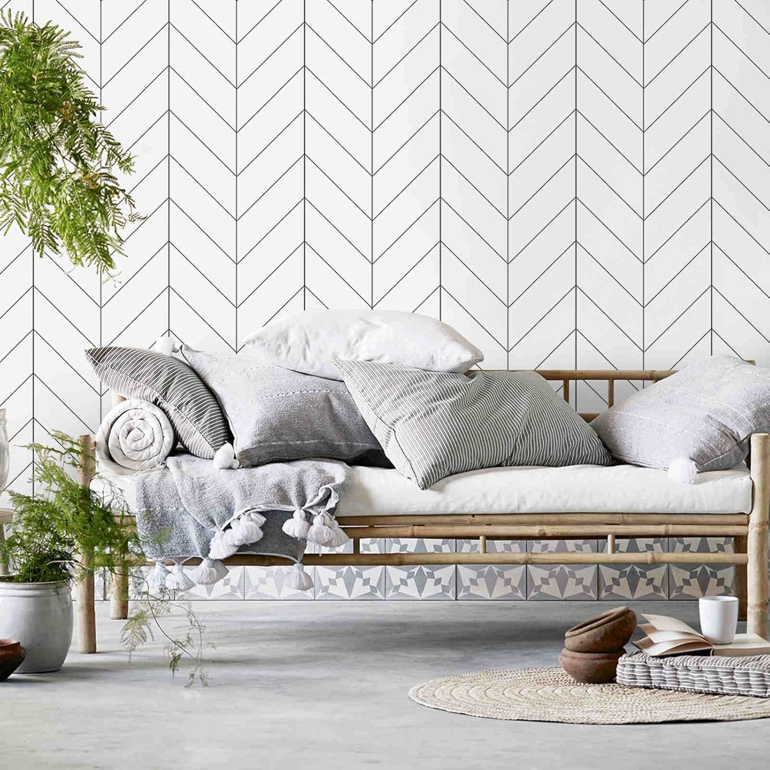This wallpaper provides a simple way to refresh interiors with a clean black and white chevron design that adds depth and visual interest while maintaining a refined, minimalist style.