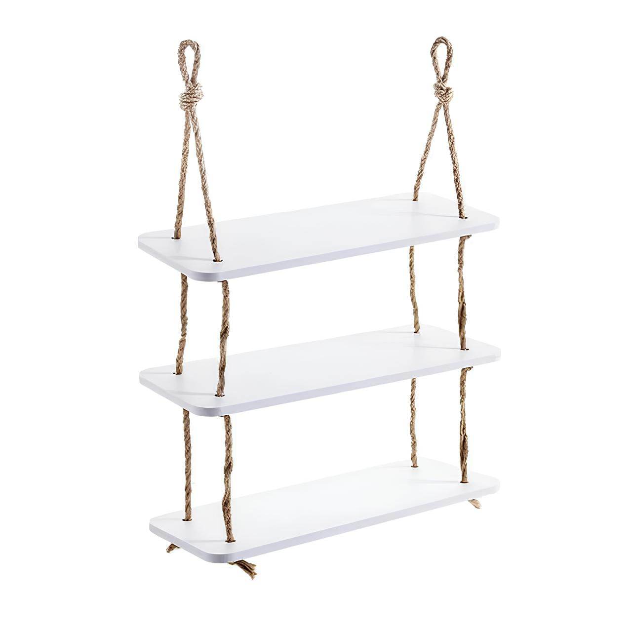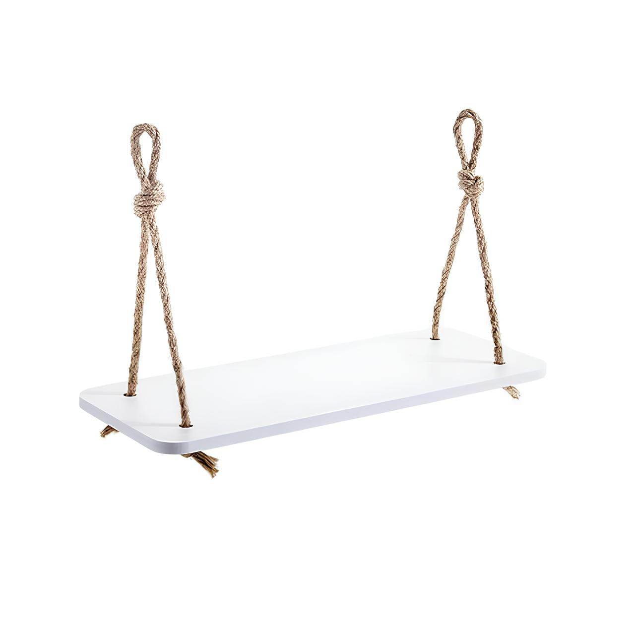 This shelf offers a straightforward way to organise and display items while introducing a natural rope and white wood finish to your décor.