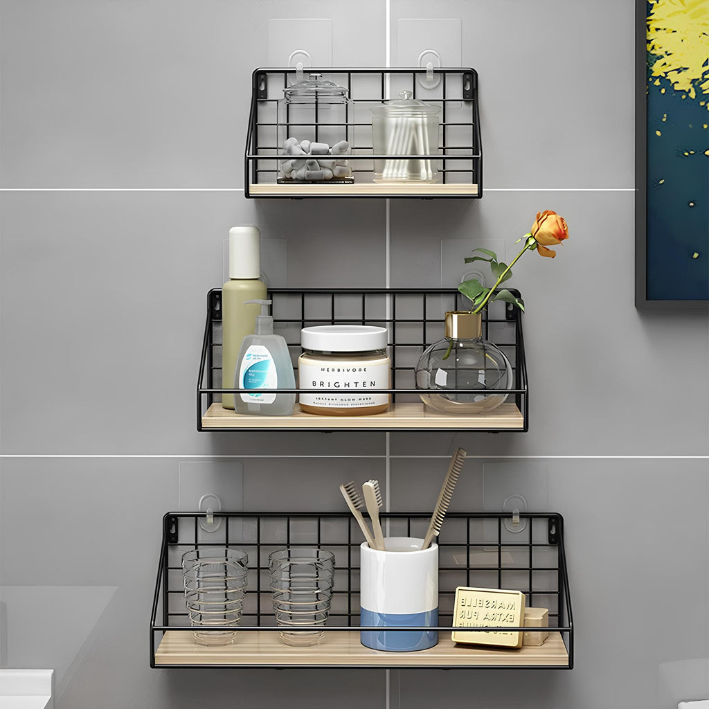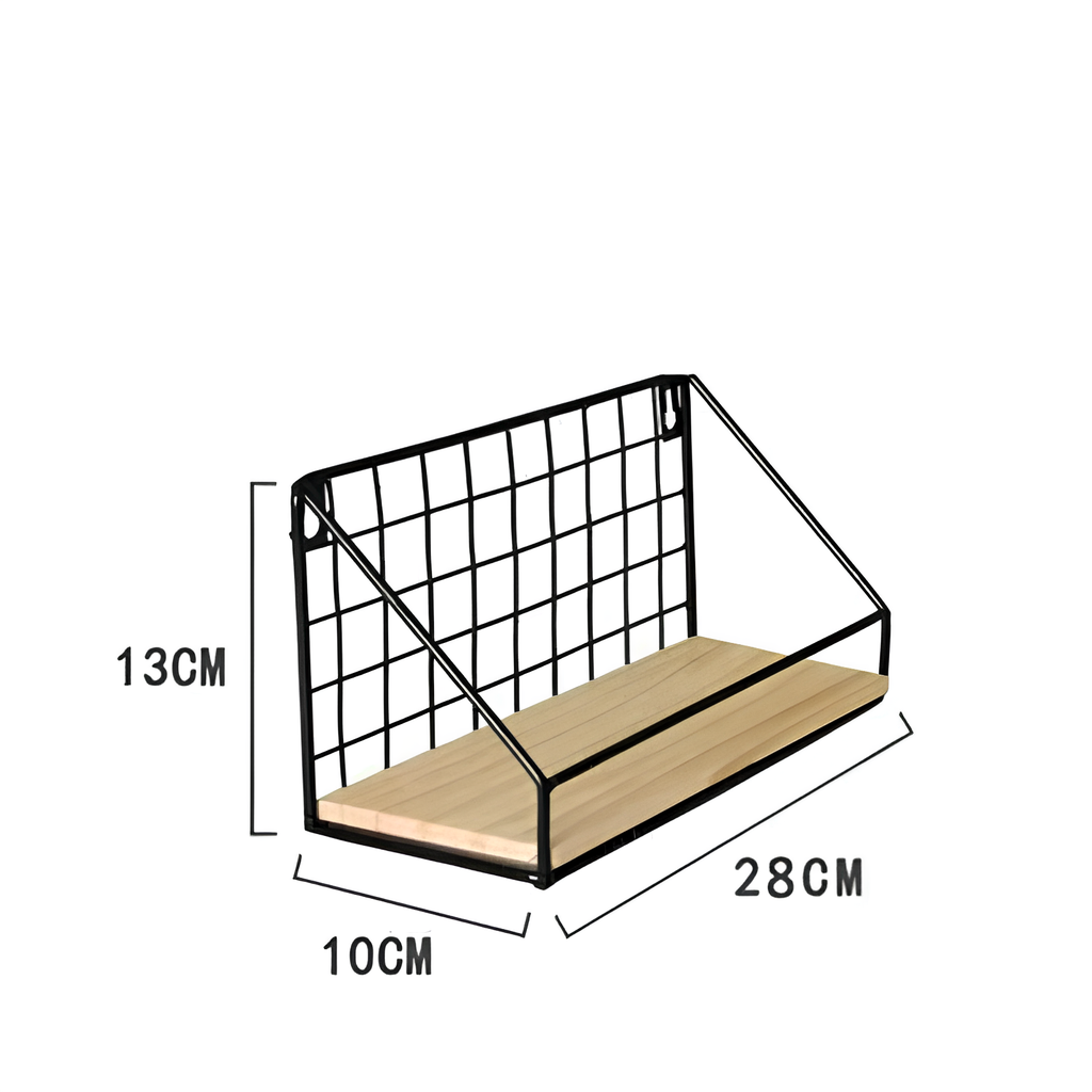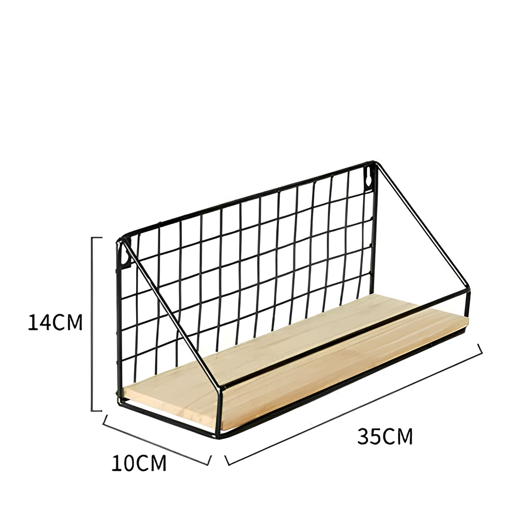 The Modern Wire Wall Shelf combines a black metal grid frame with a natural wooden base. Available in two sizes — 28 cm and 35 cm — it blends industrial strength with Scandinavian simplicity, making it suitable for kitchens, living rooms, offices or bedrooms.