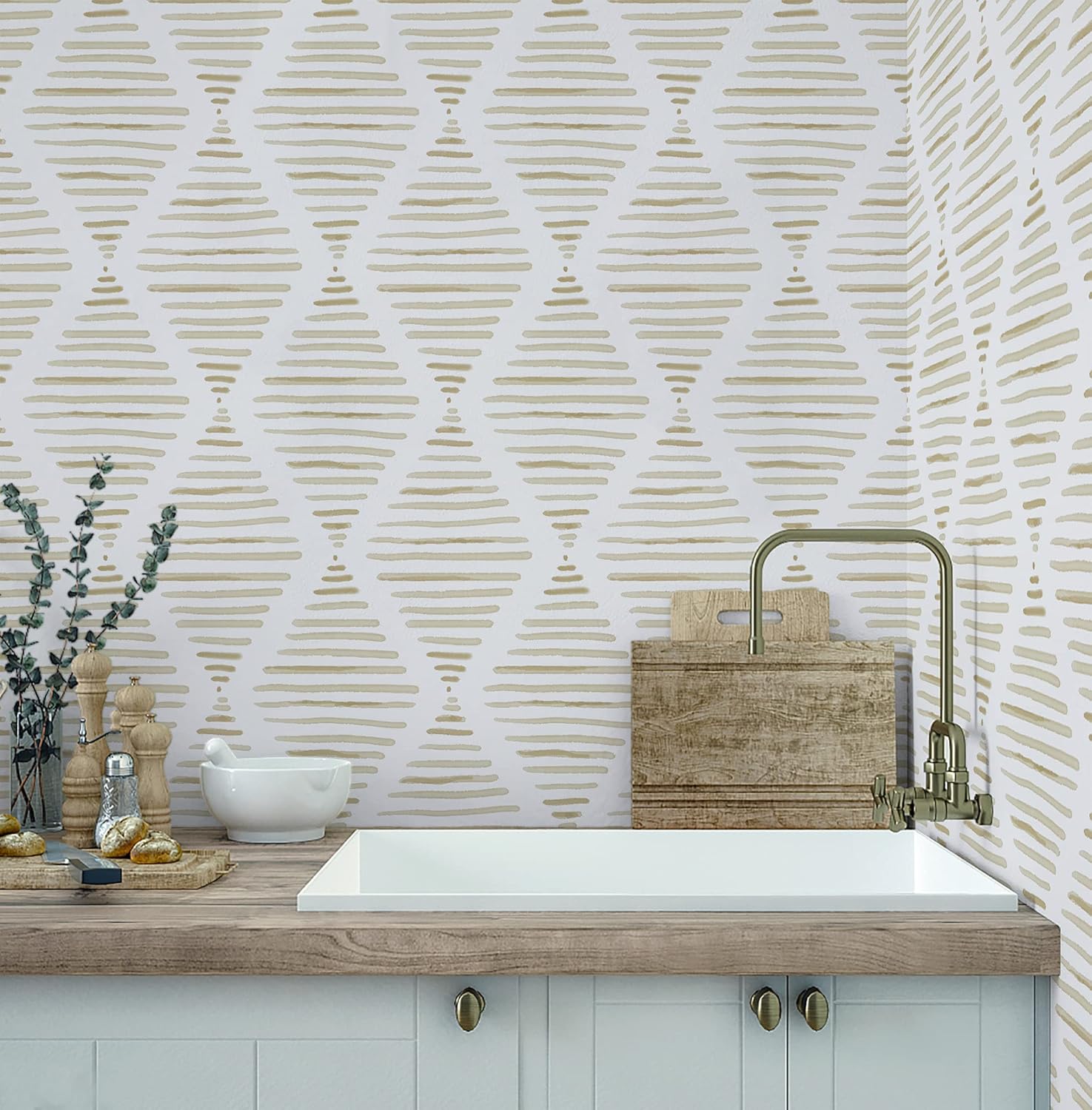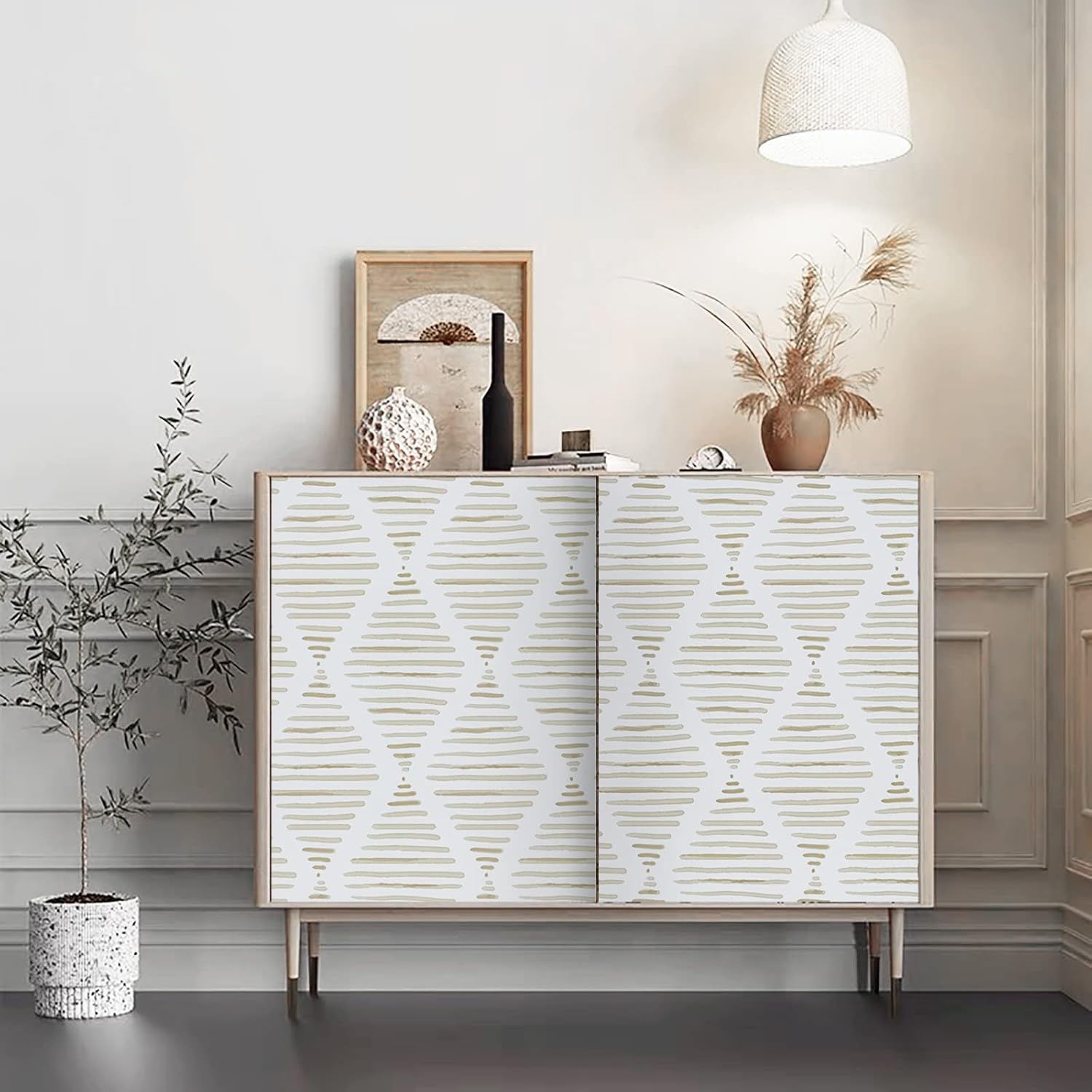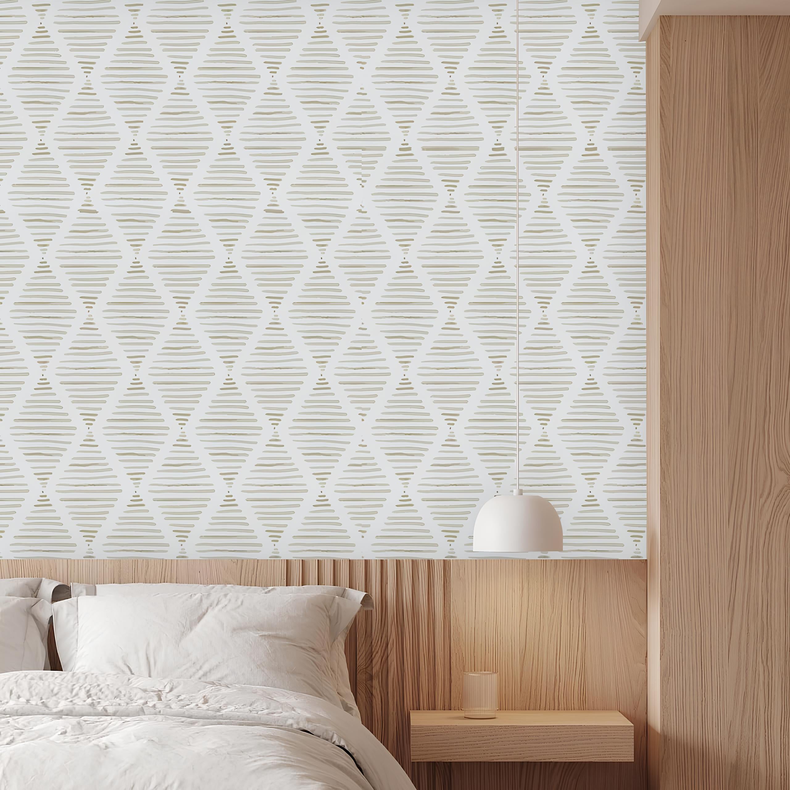 The Scandinavian Geometric Peel and Stick Wallpaper features a diamond pattern in soft beige lines on a white background. This design reflects minimalist Nordic style, creating a clean and calming look for bedrooms, living rooms or accent walls. It pairs easily with natural wood tones, textiles and modern interiors.